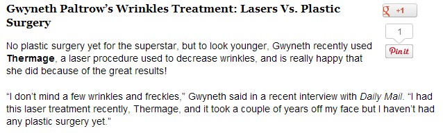 ▲好萊塢女星葛妮絲 派特洛 Gwenyth Paltrow是Thermage 電波拉皮的愛用者