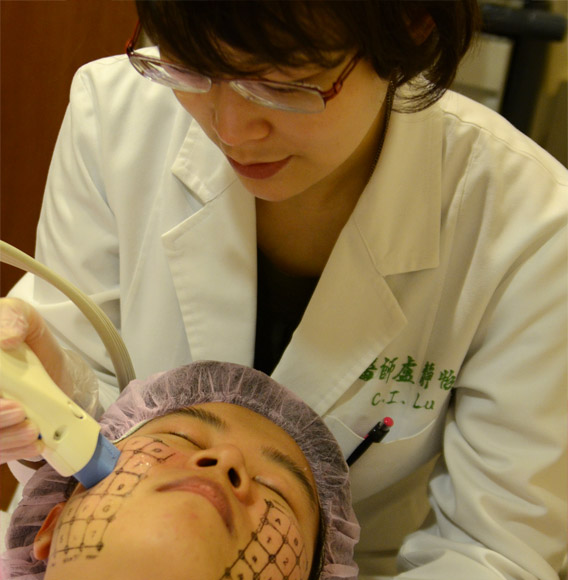 ▲ 盧靜怡醫師治療Thermage電波拉皮中,請認明Thermage電波拉皮是需要上專用的轉印格子的。