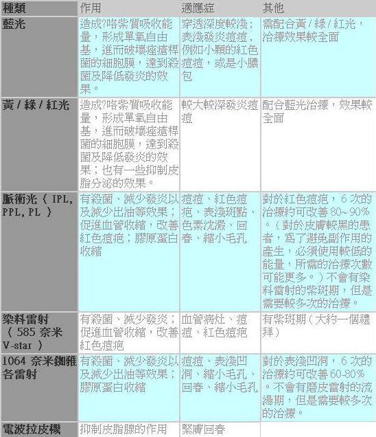 光照療法雖然是青春痘很好的輔助治療方式,但是每一種光照療法的功效不盡相同,而且是自費的,必須依照患者的皮膚狀況、經濟能力以及醫師的專業判斷來做選擇,才能達到最好的效果。