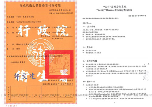 (酷爾塑平CoolSculpting已經通過行政院衛生署許可,請看右圖:應用包含減少腰、腹部脂肪層厚度)