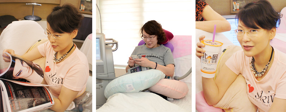 療程中, 還可以一邊看雜誌休息, 滑手機, 還可以偷喝飲料!