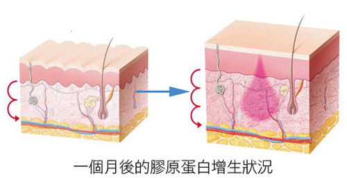 (圖 經由立體電波治療一個月後膠原蛋白增生示意圖)