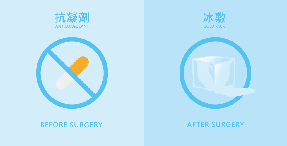 男人因為腎上腺激素較活躍,中年人又常罹患高血壓,手術中血壓的控制非常重要,尤其長期服用抗凝劑的人,術前需要停藥兩周,以免術中和術後出血。術後要多冰敷和溫敷,可減少腫脹疼痛,恢復更快,如果可以穿戴彈性頭套來塑型,效果更佳。